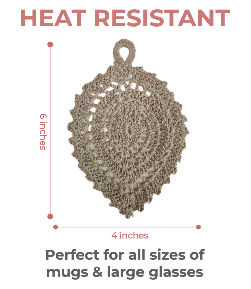 Whether you’re looking for something unique for your home or a thoughtful present, these crochet coasters make an excellent wedding favor, return gift, housewarming gift, festive hamper addition, or a charming souvenir. With their natural leaf shape and soft earthy tones, they bring serenity and warmth to any décor style.