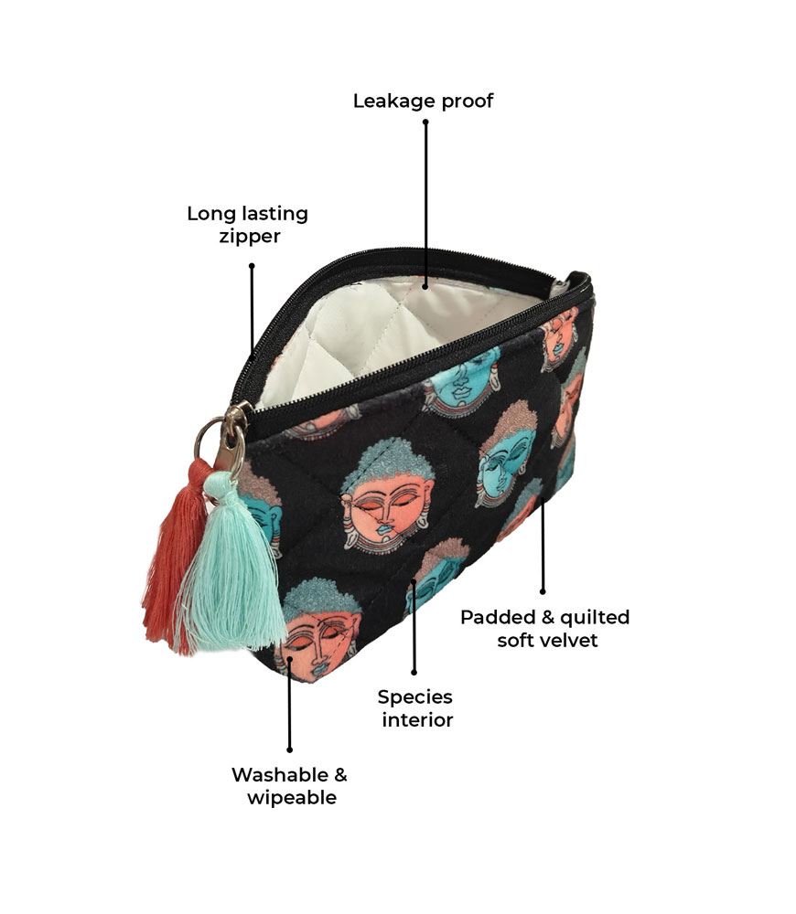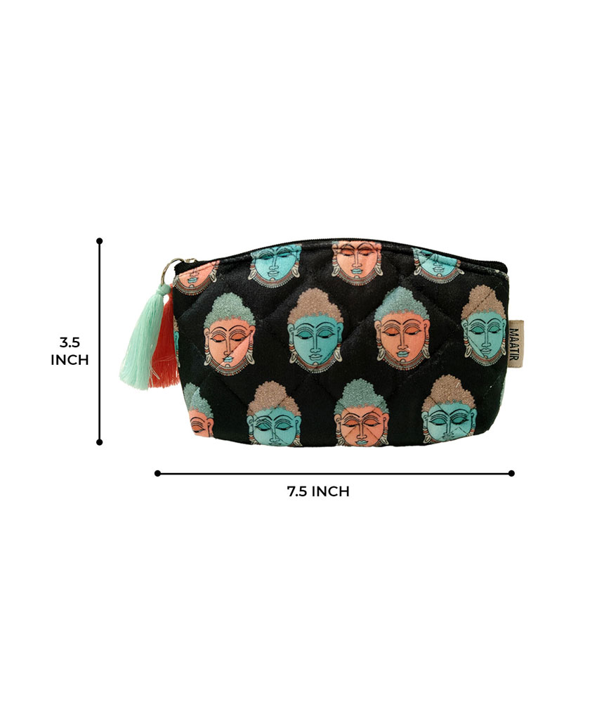This pretty Kalamkari art Buddha print has been created to bring color and charm to your travel toiletry and make-up routine. The pouch in this is perfectly sized for your sunglasses and easily holds up to two pairs. This multipurpose waterproof pouch set is lightweight, hardy, waterproof and comes in 2 useful sizes to make travel organization easy.