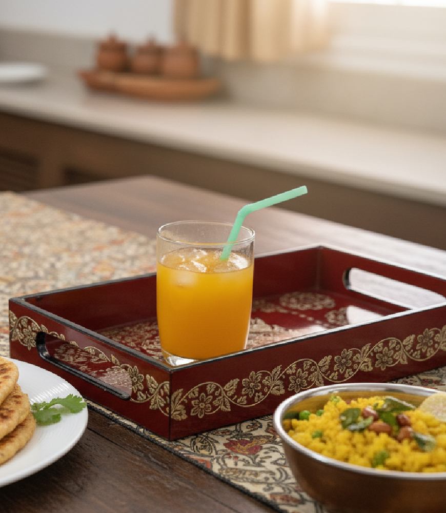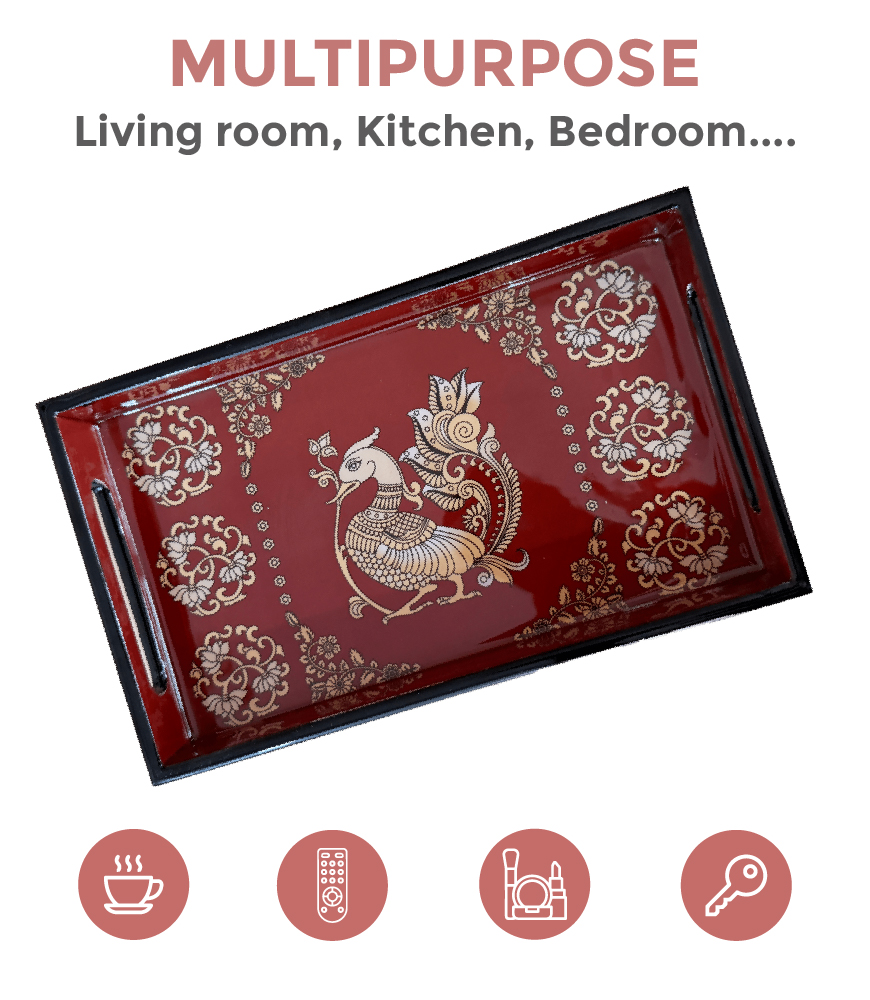 This versatile piece serves multiple roles—it’s perfect for serving beverages or snacks with style, as a stunning decorative centerpiece that catches every eye, or as an elegant addition to your dressing table. More than just functional, this tray is a statement piece that bridges the gap between heritage and contemporary utility.