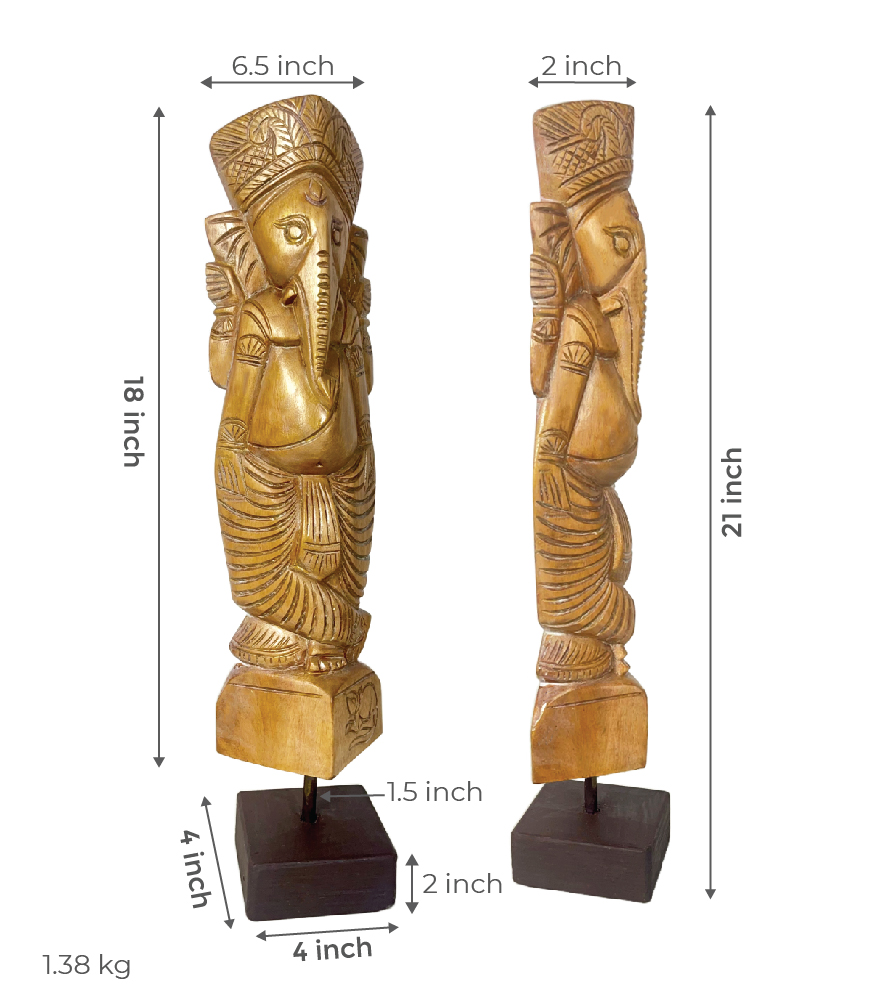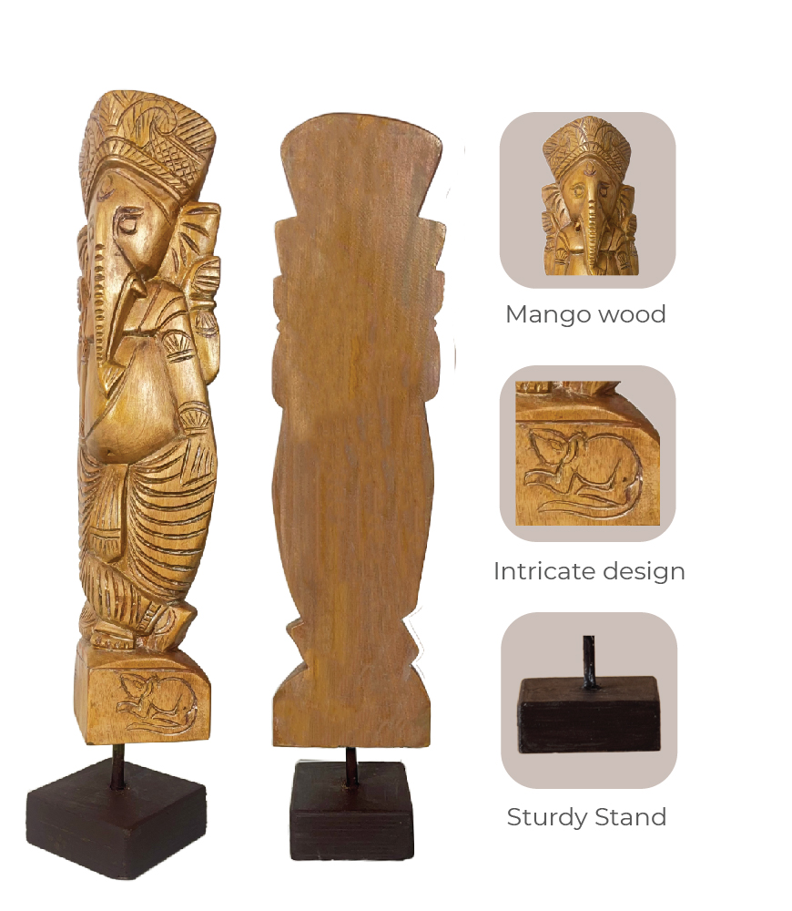 Hand crafted by skilled artisans – this contemporary Ganesha has been carved from a block of solid wood. The much beloved Lord Ganesh is also known as Vighnaharta or the remover of obstacles; He is the God of Wisdom and Learning and a positive symbol of Prosperity and Good Fortune.