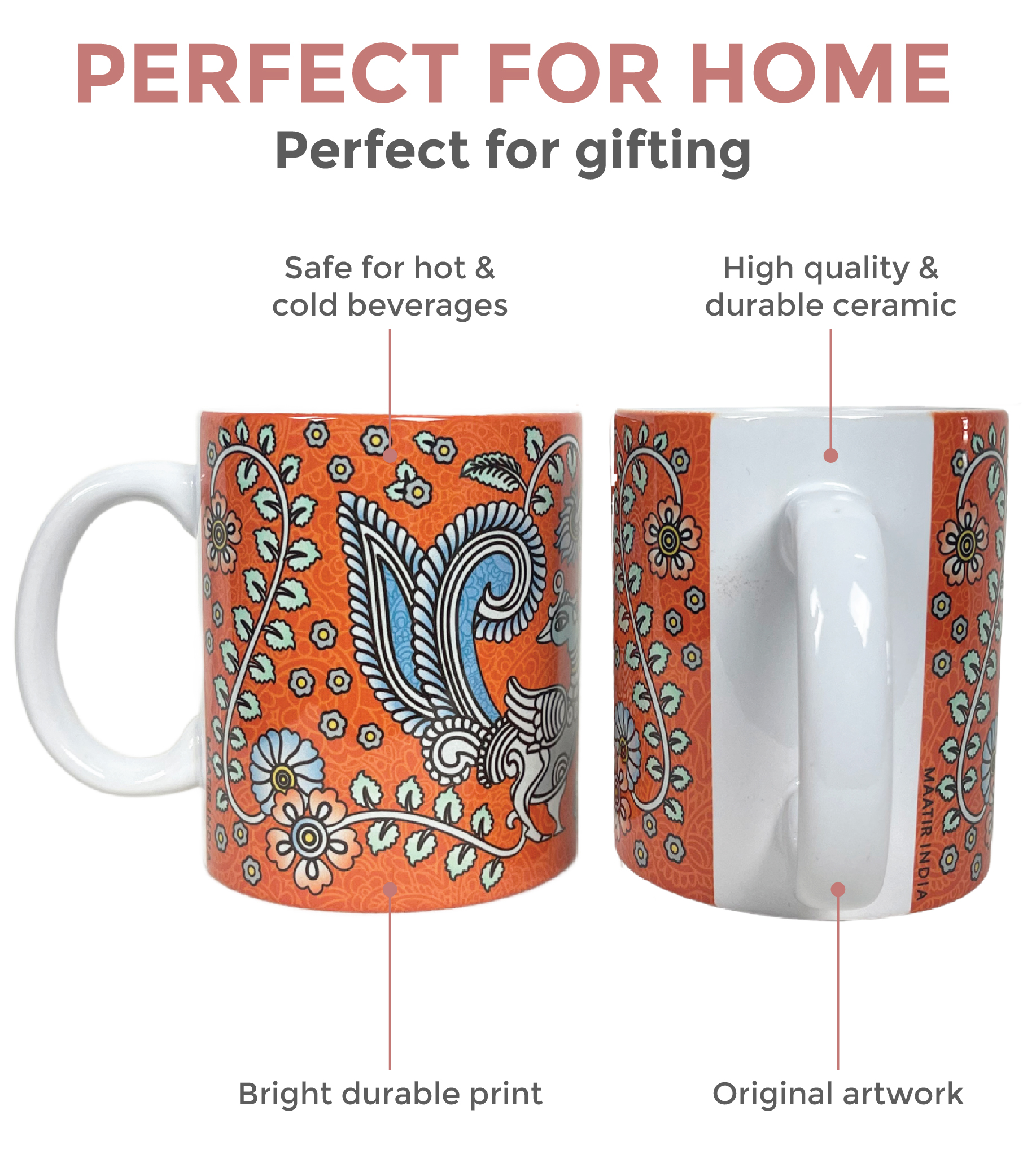 Perfect for tea lovers, coffee enthusiasts, and design admirers, this mug is both a functional daily essential and a collector’s keepsake. Whether you use it at home, in the office, or as a thoughtful gift, it reflects India’s rich artistic traditions in a modern, usable form.