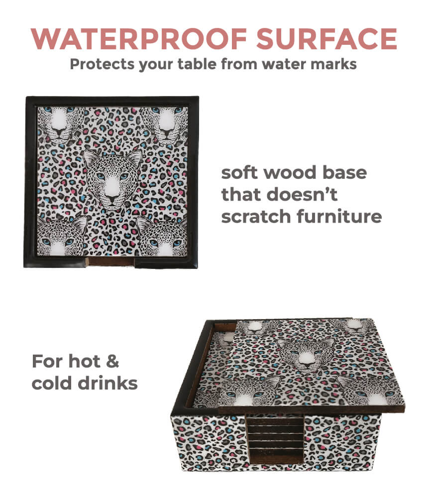 Each 4-inch square coaster is crafted from durable wood and printed using high-definition technology for crisp details and premium colours. The protective coating ensures every coaster is fully waterproof, spill-proof, heat-resistant, and long-lasting, making it ideal for hot beverages like tea and coffee as well as cold drinks, cocktails, juices, and everyday use.
