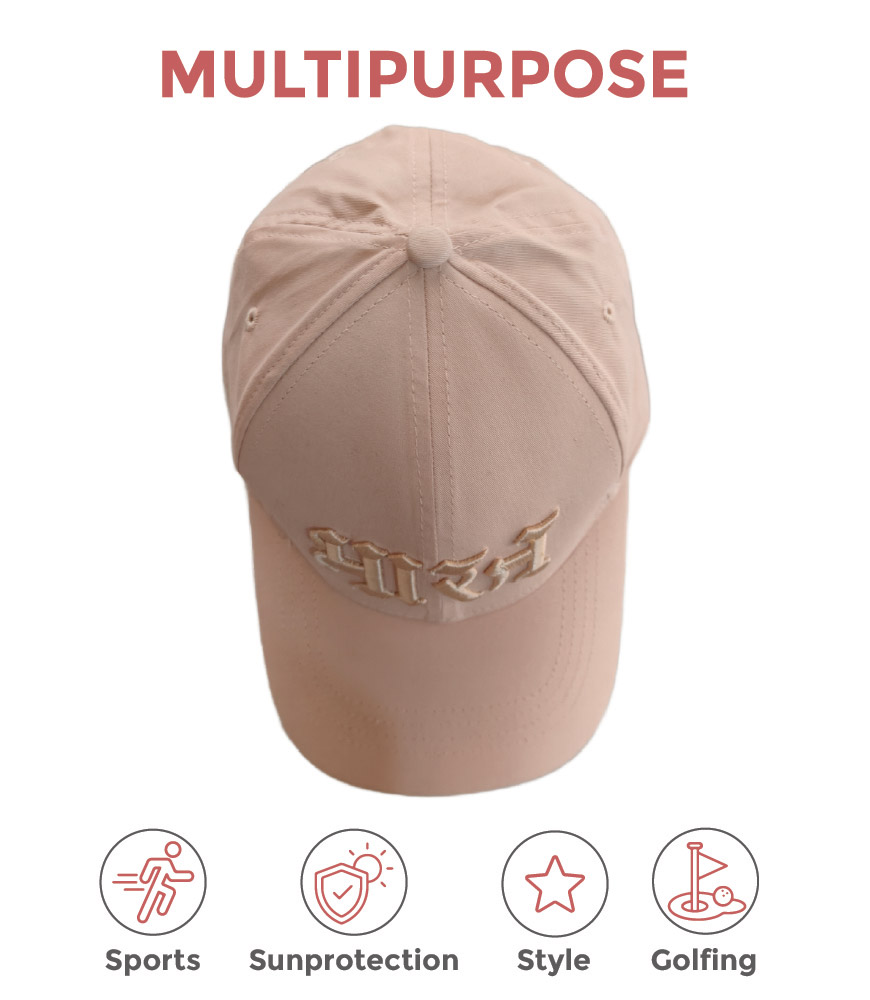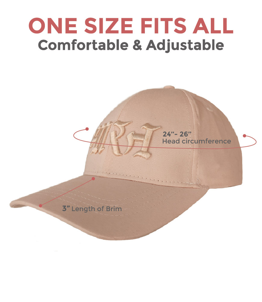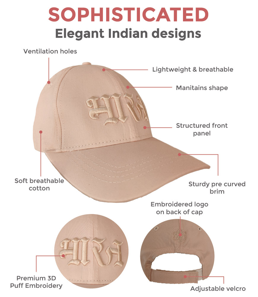 The highlight of this cap is its tone-on-tone 3D embroidery of the word “Bharat”, crafted in a unique artistic font. The pink-on-pink design adds depth and elegance without being loud, making it a stylish yet understated accessory.