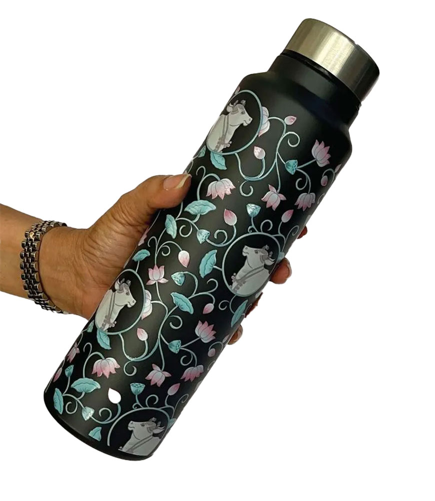 If you’re looking for an elegantly designed printed water bottle, sustainable steel bottle, reusable eco-friendly bottle, or a cultural gift, this Pichwai art bottle is the perfect choice.