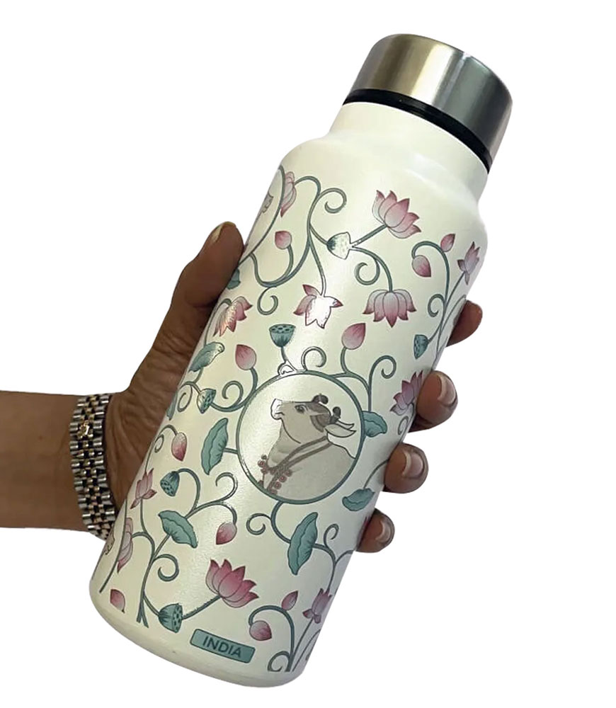 Whether you are looking for an elegantly designed printed water bottle, a sustainable lifestyle product, or a premium cultural gift, this bottle ticks all the boxes. With its sophisticated design and traditional art inspiration, it’s an excellent choice for corporate gifting, festive presents, or personal use.