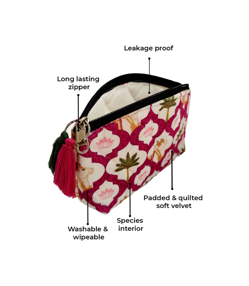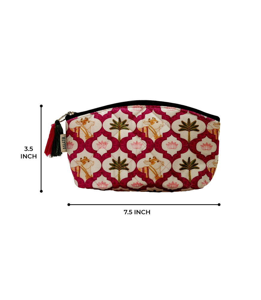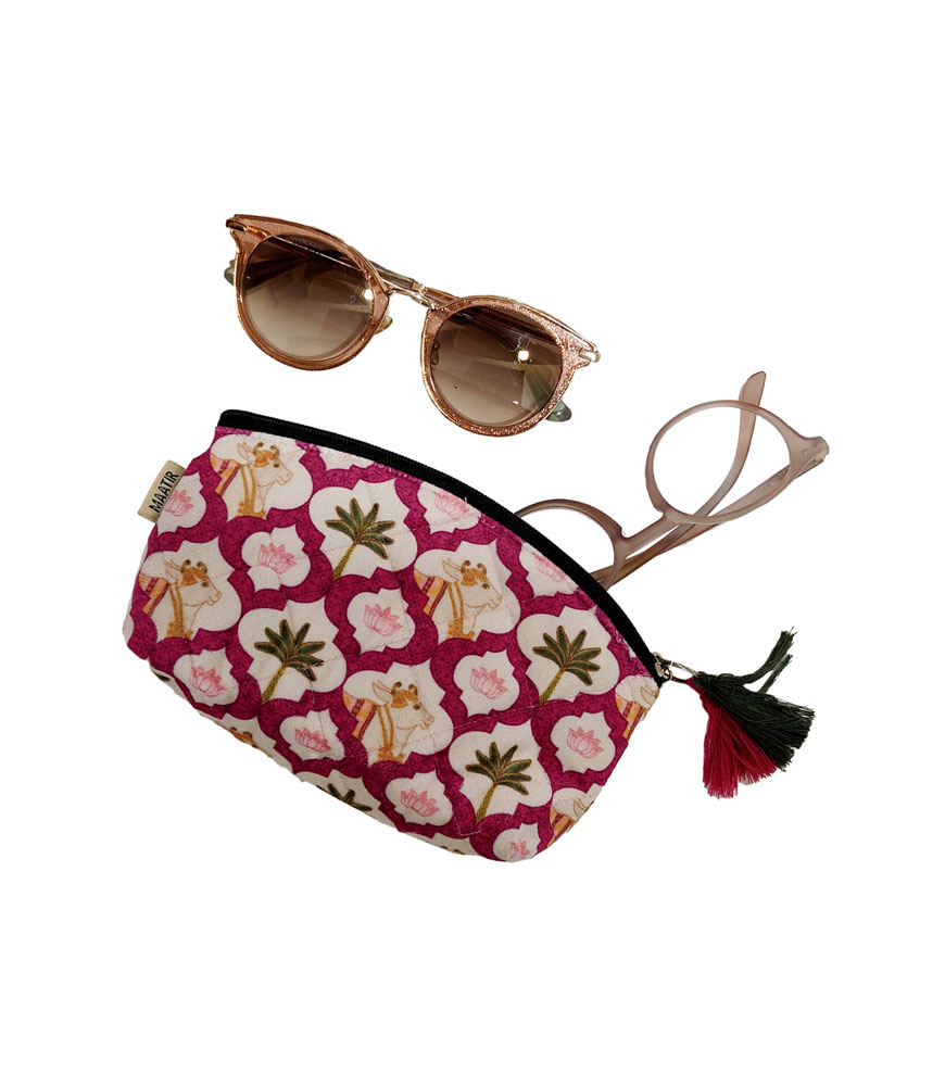 This pretty Pichwai cow and floral print has been created to bring color and charm to your travel toiletry and make-up routine. The smaller pouch is perfectly sized for your sunglasses and easily holds up to two pairs. This multipurpose waterproof pouch set is lightweight, hardy, waterproof and comes in 2 useful sizes to make travel organization easy.