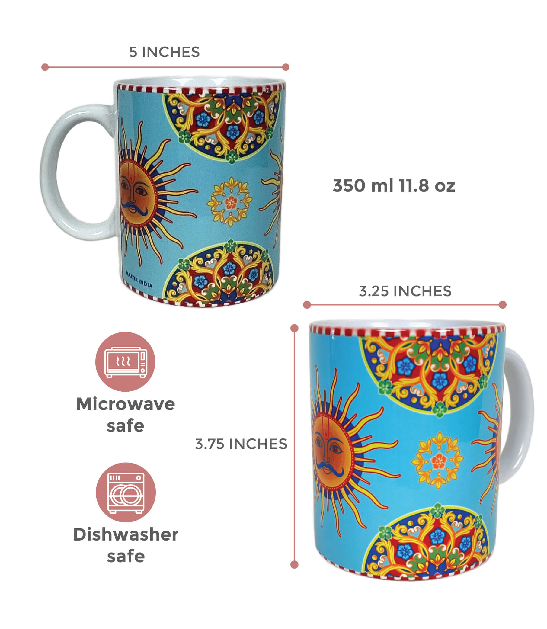 Whether you’re sipping your morning coffee, enjoying evening tea, or serving a warm drink to guests, this ceramic mug adds elegance and cultural flair. Its 330ml capacity is perfect for everyday use, while the premium printing ensures long-lasting colours.