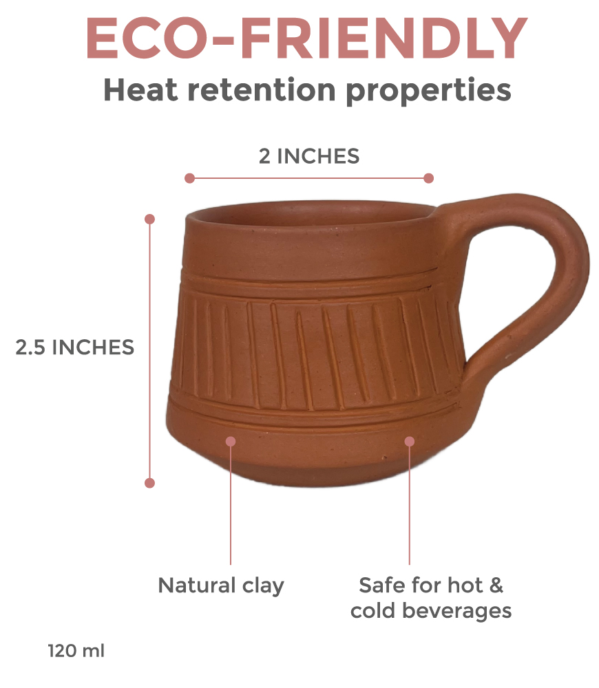 Each mug is carefully shaped from natural terracotta clay, giving it a rustic yet elegant look. With a 120 ml capacity, these mugs are perfect for chai, coffee, green tea, or even warm