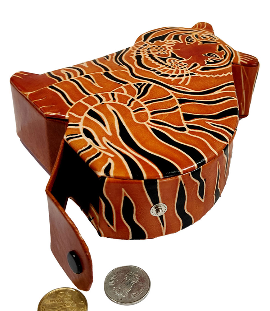 Crafted from high-quality, eco-friendly leather, this coin box is durable, lightweight, and perfect for securely storing your loose change or small trinkets. The bold design, inspired by India’s national animal, reflects the cultural significance and artistry of this historic craft, making it a meaningful gift or collector’s item.