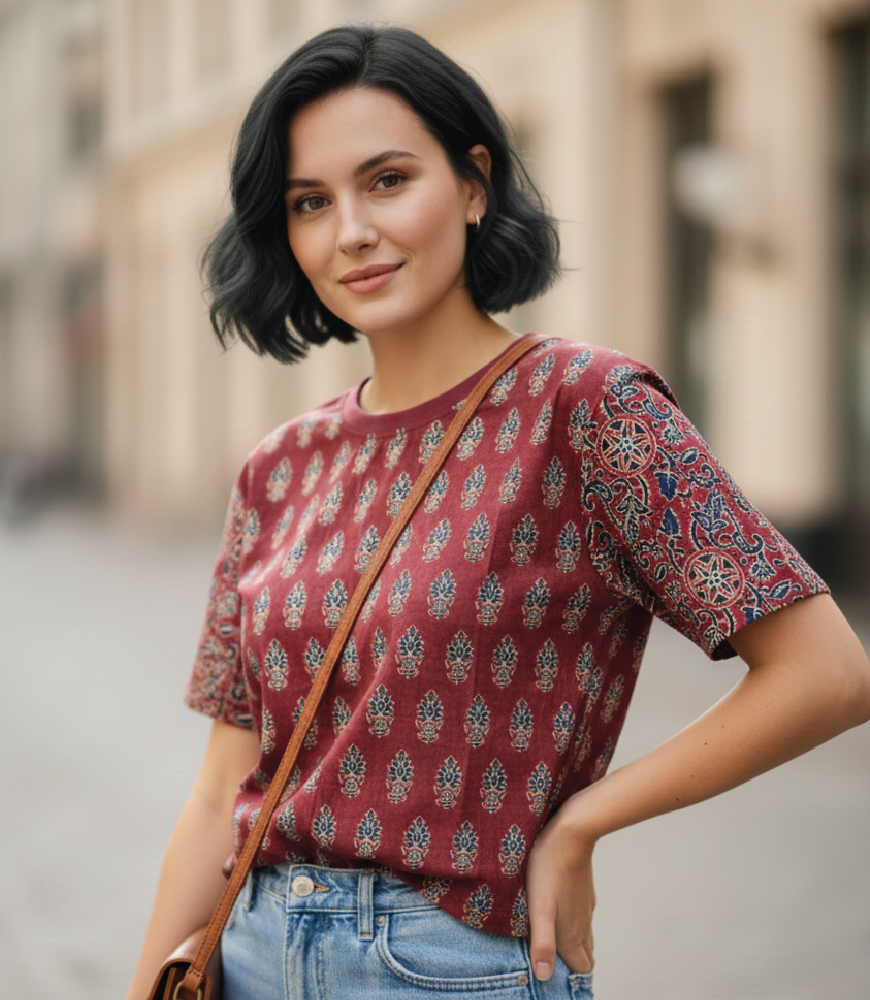 Experience the timeless charm of Jaipur hand block printing with this elegant women’s pure cotton top in a rich maroon hue. Thoughtfully designed for comfort and everyday versatility, this top blends traditional Indian craftsmanship with a modern, easy-to-wear silhouette.