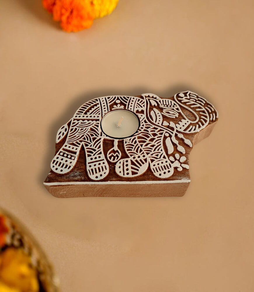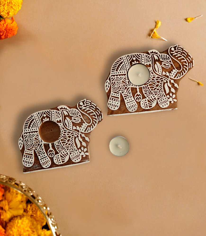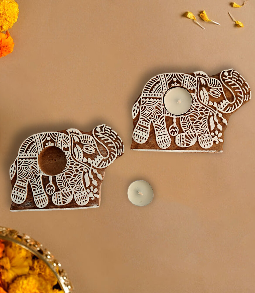 Add a touch of cultural artistry and timeless beauty to your home with these elephant candle holders. Perfect for festive celebrations or everyday decor, they illuminate your space with a warm glow and a sense of tradition!